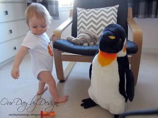 I've decided to carry on with Holden's monthly photos as I loved having them to look at altogether at his birthday party. I'm going to take the same photos every month if I can, beside his bunny and standing beside his penguin. {This month I didn't get a chance to take all of the photos until the 2nd!}